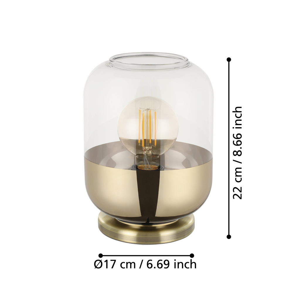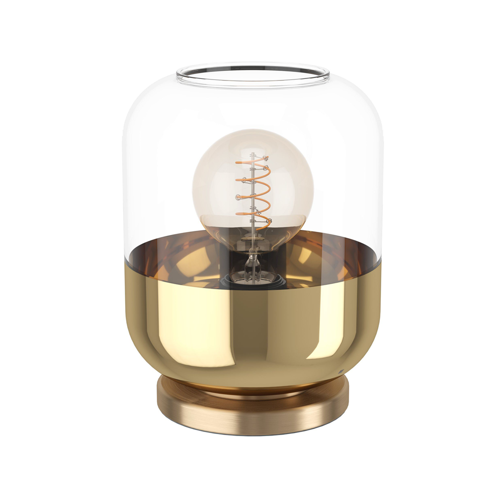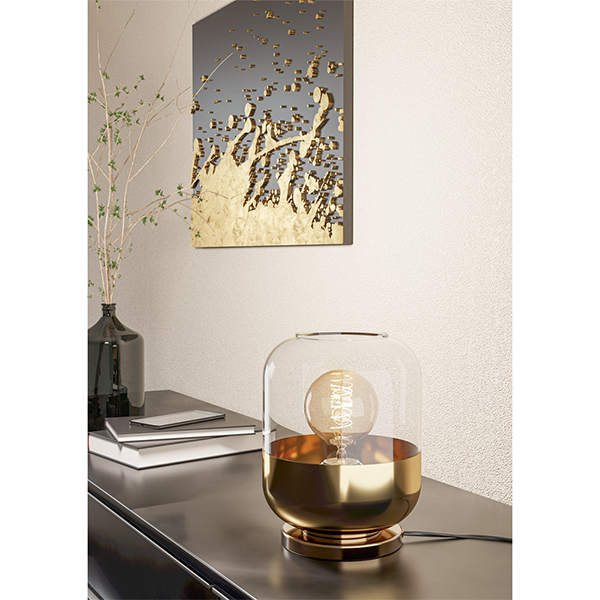 【喬遷新居的最佳選擇】EGLO奧地利燈飾這盞檯燈,採用透明玻璃製成的燈罩,底部飾有金色細節,覆蓋燈罩和底座。搭配黑色電纜上的串聯開關可以輕鬆打開和關閉檯燈,這款產品與現代室內裝潢完美融合,無論是在床頭櫃上或在客廳、餐廳或走廊上,都能提供時尚的照明。