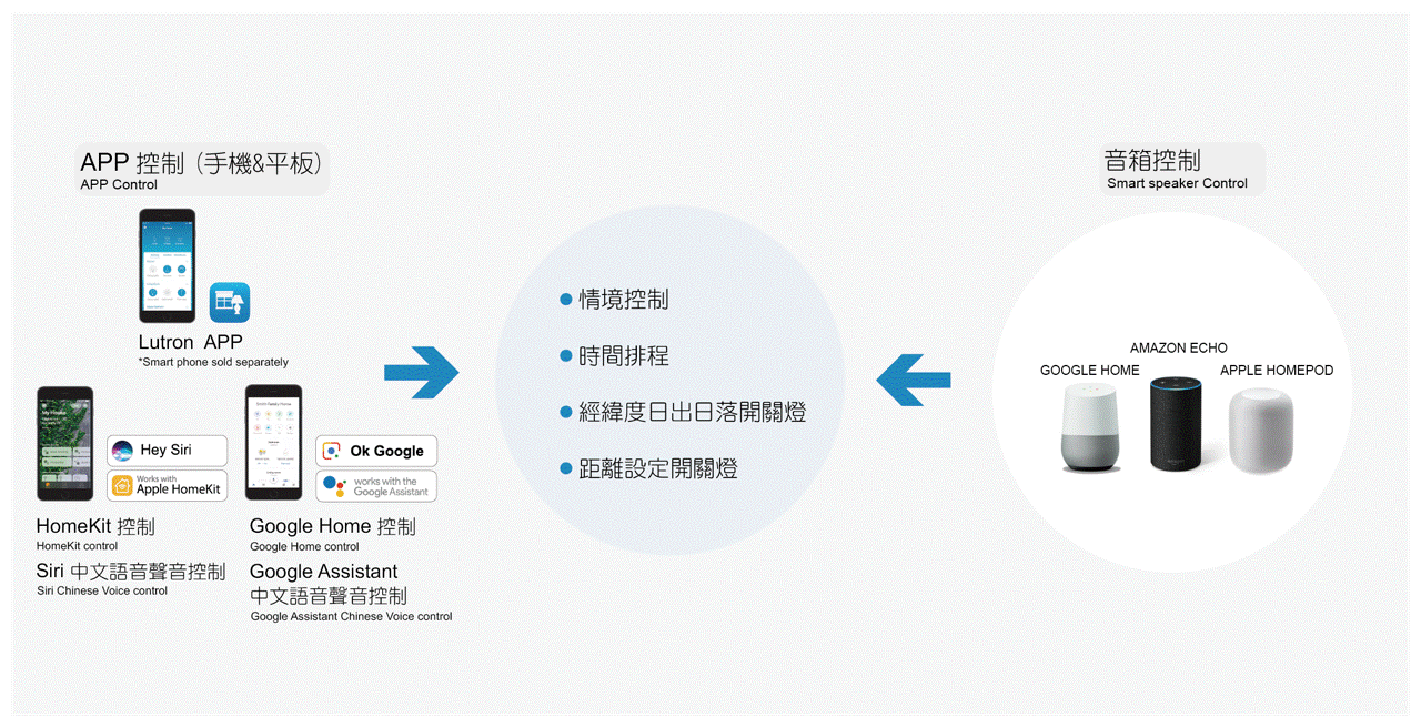 - 特殊的照明控制功能,如日程安排,场景,Smart Away等