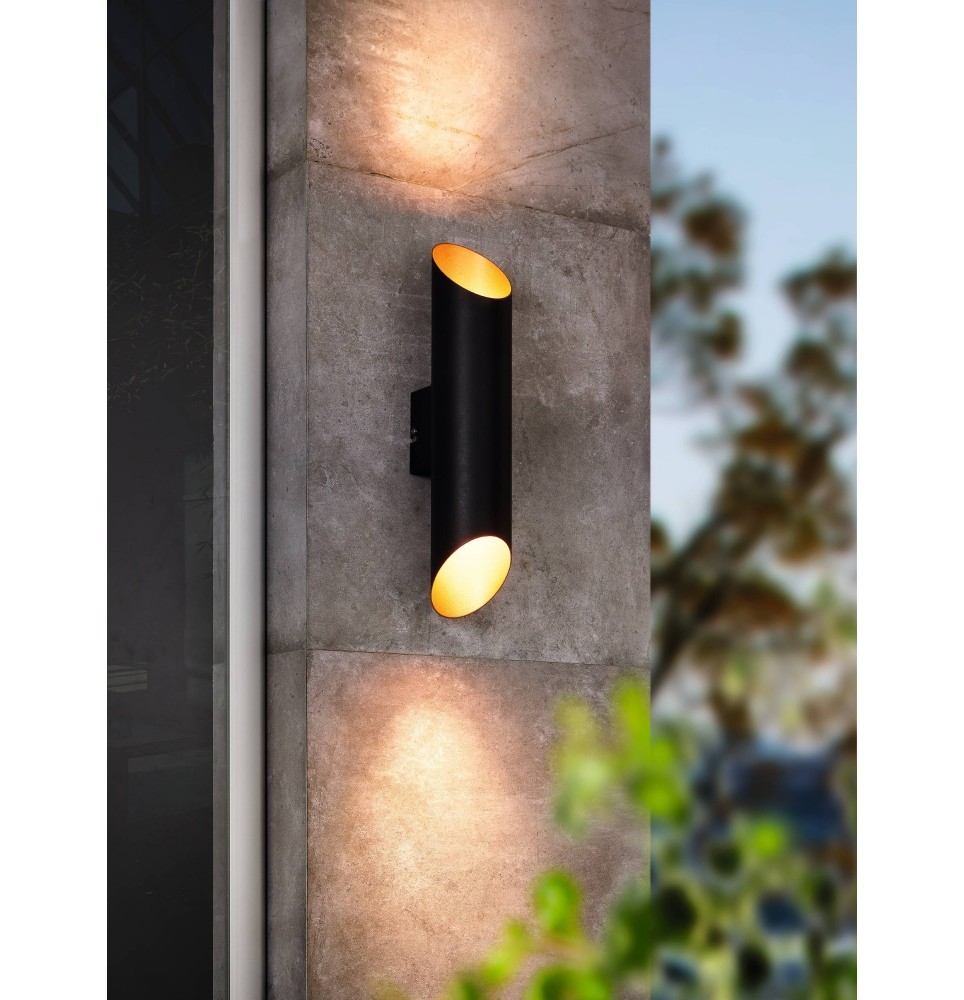 EGLO AGOLADA 戶外壁燈系列,採用了不鏽鋼材質搭配典雅內斂的黑色+銅色設計, 經典耐看好搭配, 會是您戶外照明的好選擇!