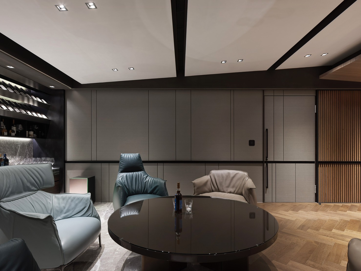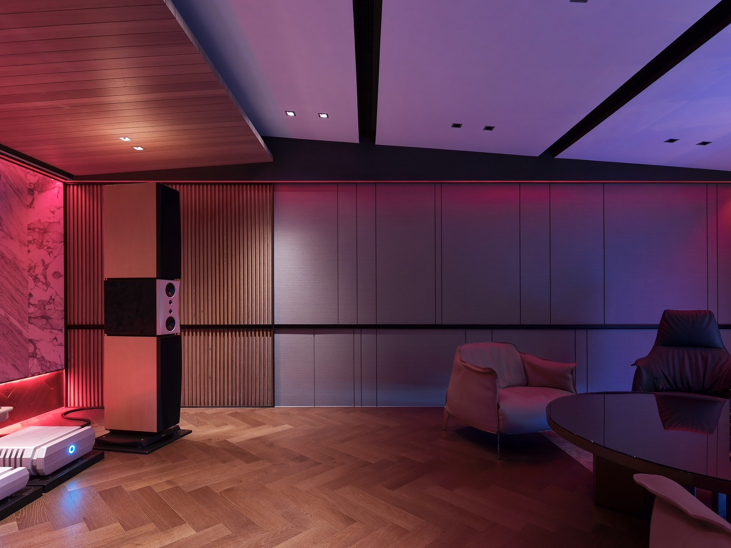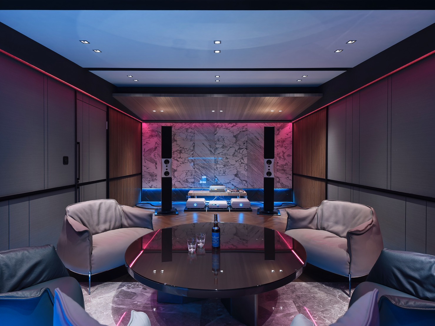 會客室設計不僅注重聲音效果,同時也融入了視覺效果,搭配智能燈控系統,可以根據不同的音樂風格和場景,提供相應的視覺效果和氛圍,讓客人感受到真正的音樂氛圍和環境。