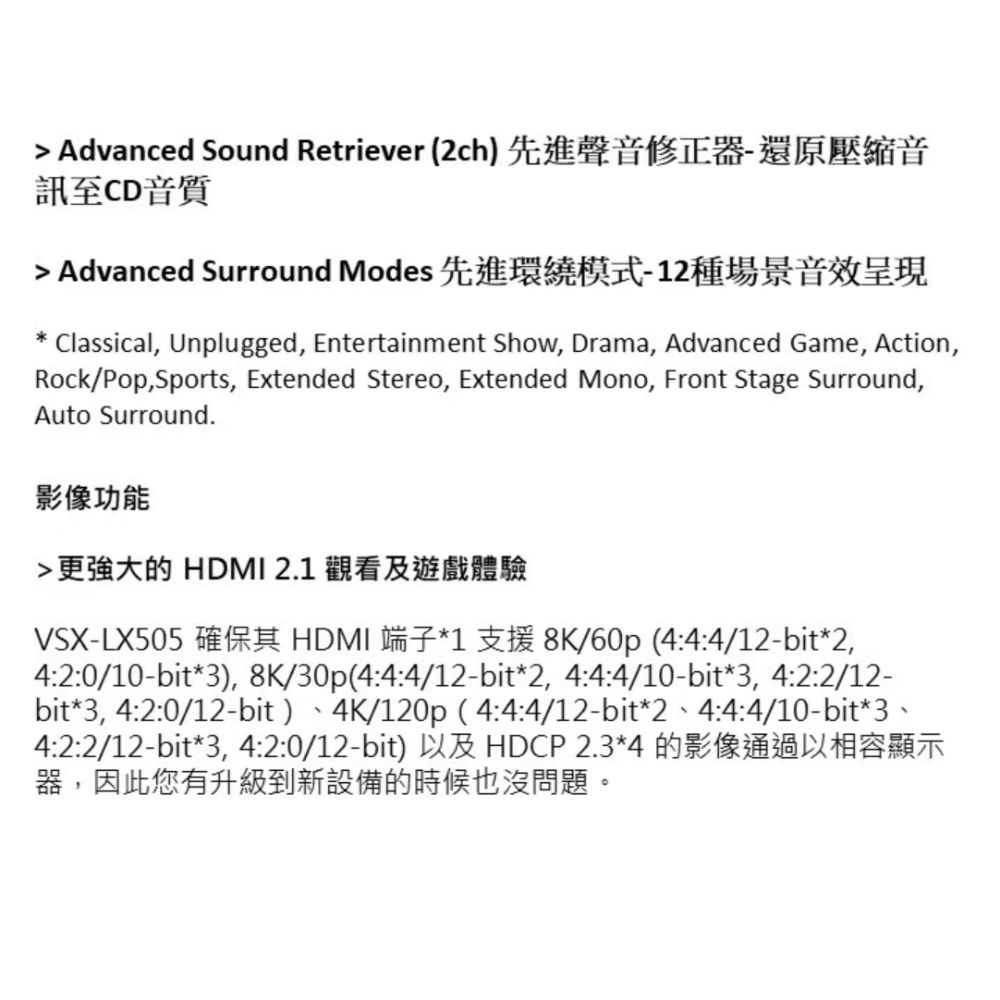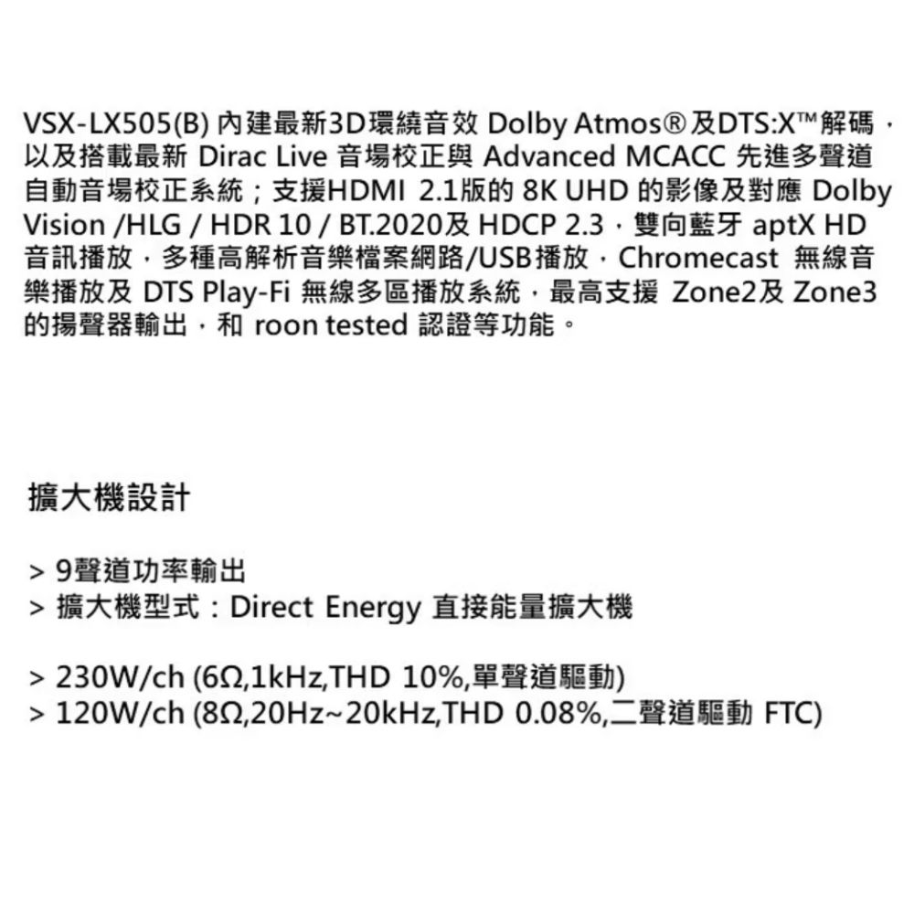 Pioneer 先鋒_9.2聲道 AV 環繞擴大機 VSX-LX505(B)